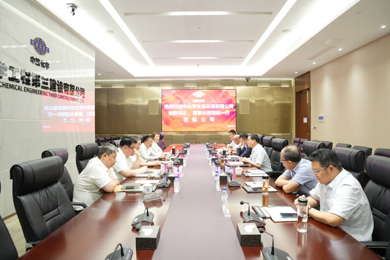 9月16日,中國化學工程第三建設有限公司黨委書記、董事長占德慶在合肥總部會見中化學生態環境有限公司黨委書記、董事長邵程旺一行,雙方就深化合作等事宜進行了深入溝通交流。