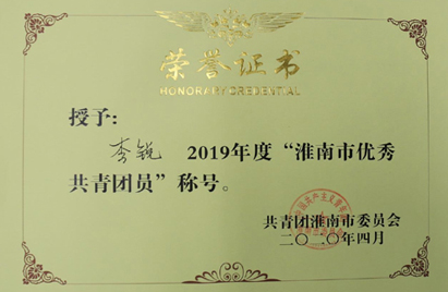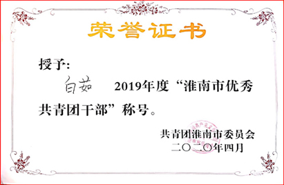 共青團淮南市委員會日前對第九屆“淮南青年五四獎章”和2019年度“淮南市優秀共青團員”、“淮南市優秀共青團干部”、“淮南市五四紅旗團(工)委”、“淮南市五四紅旗團支部(總支)”進行了表彰。重慶分公司王泳文同志榮獲第九屆“淮南青年五四獎章”稱號;貴州分公司李銳、公司安全監督部王黎明兩名同志榮獲“淮南市優秀共青團員”稱號,機械化工程公司白茹同志榮獲“淮南市優秀共青團干部”稱號,公司技術研發中心項目經理部團支部、安裝工程九公司團支部榮獲“淮南市五四紅旗團支部”稱號。
