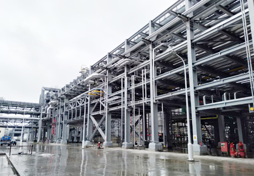 公司承擔了一期項目6.3萬噸鋼結(jié)構(gòu)、250萬DB工藝管道焊接、2150臺設備安裝任務,工程合同價款及補償款總計7.9億元。自2017年10月一期項目地管工程開工、2018年7月安裝工程開工以來,公司領導親切關懷,各參戰(zhàn)單位竭力奮戰(zhàn),全體參戰(zhàn)員工辛勤付出,一個個關鍵節(jié)點被成功攻克,項目建設得到強力推進。