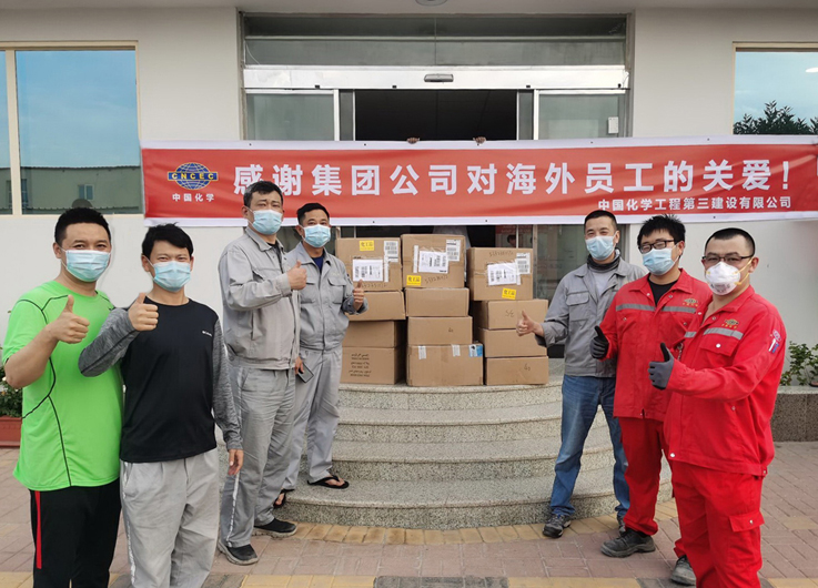 在新冠肺炎疫情全球蔓延的嚴峻形勢下,公司竭盡所能保障境外每一名員工的身體健康和生命安全。6月4日,最新一批發往阿曼杜庫姆煉油和乙烯項目的“肺炎一號”和“化濕敗毒顆粒”等藥品成功抵達現場,使阿曼現場累計儲存“肺炎一號”700包、“化濕敗毒顆粒”920包、“蓮花清瘟膠囊”2700盒。截至目前,公司已向境外8個國家13個項目配送了抗疫藥品及物資,完成境外項目藥品配送全覆蓋。