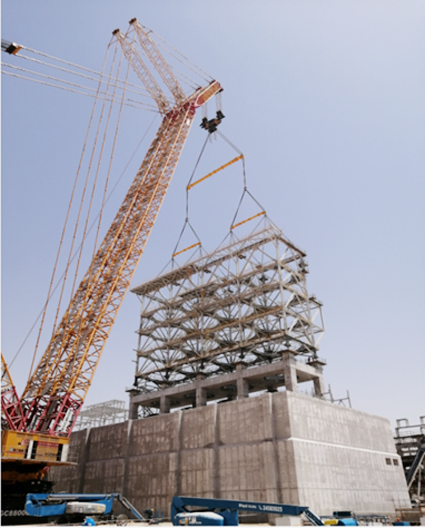 6月7日,阿曼杜庫姆煉油項(xiàng)目經(jīng)理部承建的阿曼杜庫姆煉油項(xiàng)目重達(dá)580噸的焦炭塔主框架鋼結(jié)構(gòu)開始整體吊裝。4000噸履帶吊從早晨8點(diǎn)開始起吊,歷時(shí)3個(gè)半小時(shí),將主框架順利吊裝就位。