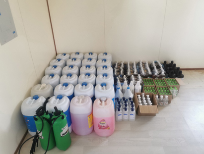 項目部將中外員工身體健康和生命安全放在第一位,疫情發生之前就未雨綢繆,迅速在當地緊急采購防護和消毒物資。隨后,按照集團公司和公司部署,多方籌措了滿足3個月使用量的防疫和生活物資。5月下旬,國內配送的防疫藥品肺炎1號、蓮花清瘟膠囊等陸續抵達現場,為現場疫情防控雪中送炭,大大增強了現場干部員工戰勝疫情的信心和決心。