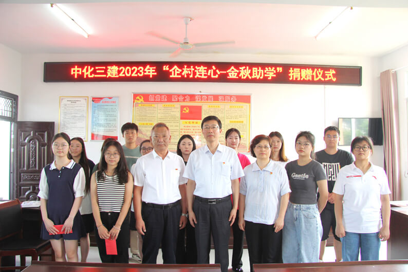 此次捐助的對象包括14名學子,其中8名將于今年9月步入大學校門,7名已于2022年入學。捐助儀式上,顧士新副書記介紹了公司發展概況、助力鄉村振興工作開展情況等,與大學生及家長們親切交談,了解了2022級大學生們的學習和家庭狀況,并對2023級準大學生們提出殷切希望。他表示,中化三建作為駐皖央企,與淮南人民心連心。得知茶庵村今年又有8名學子將邁入大學校園,公司上下高度關注、時刻牽掛,特意送來心意。希望各位學子珍惜來之不易的學習時光,時刻聽黨話、跟黨走,腳踏實地、刻苦學習、積極向上,早日成為適應社會發展的高素質人才,為國家建設、社會發展貢獻力量。